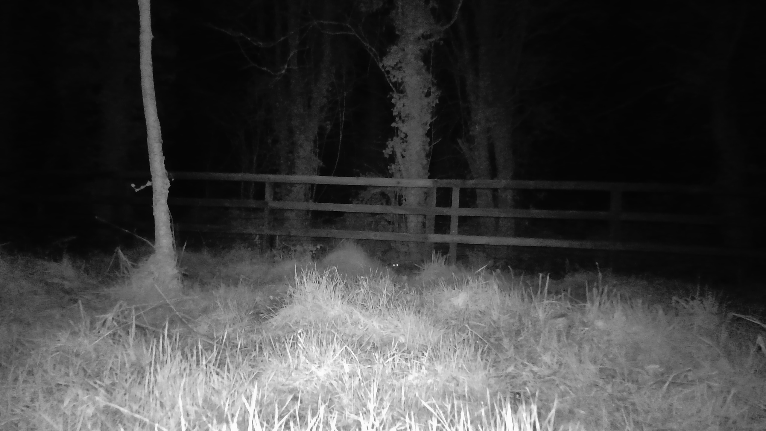 There’s some good news about the trail cameras. After weeks of wrangling, cursing and getting pictures of waving grass we’ve got something. You may remember the badger’s bum from last time? Well, he is certainly a big lad and we’ve pictures and a short video of him waddling off for a night out. The very nervous pine marten has finally made an entrance and a couple of days ago we got our first fox too. If you click on the pictures you can enlarge them. Look for the eyes!