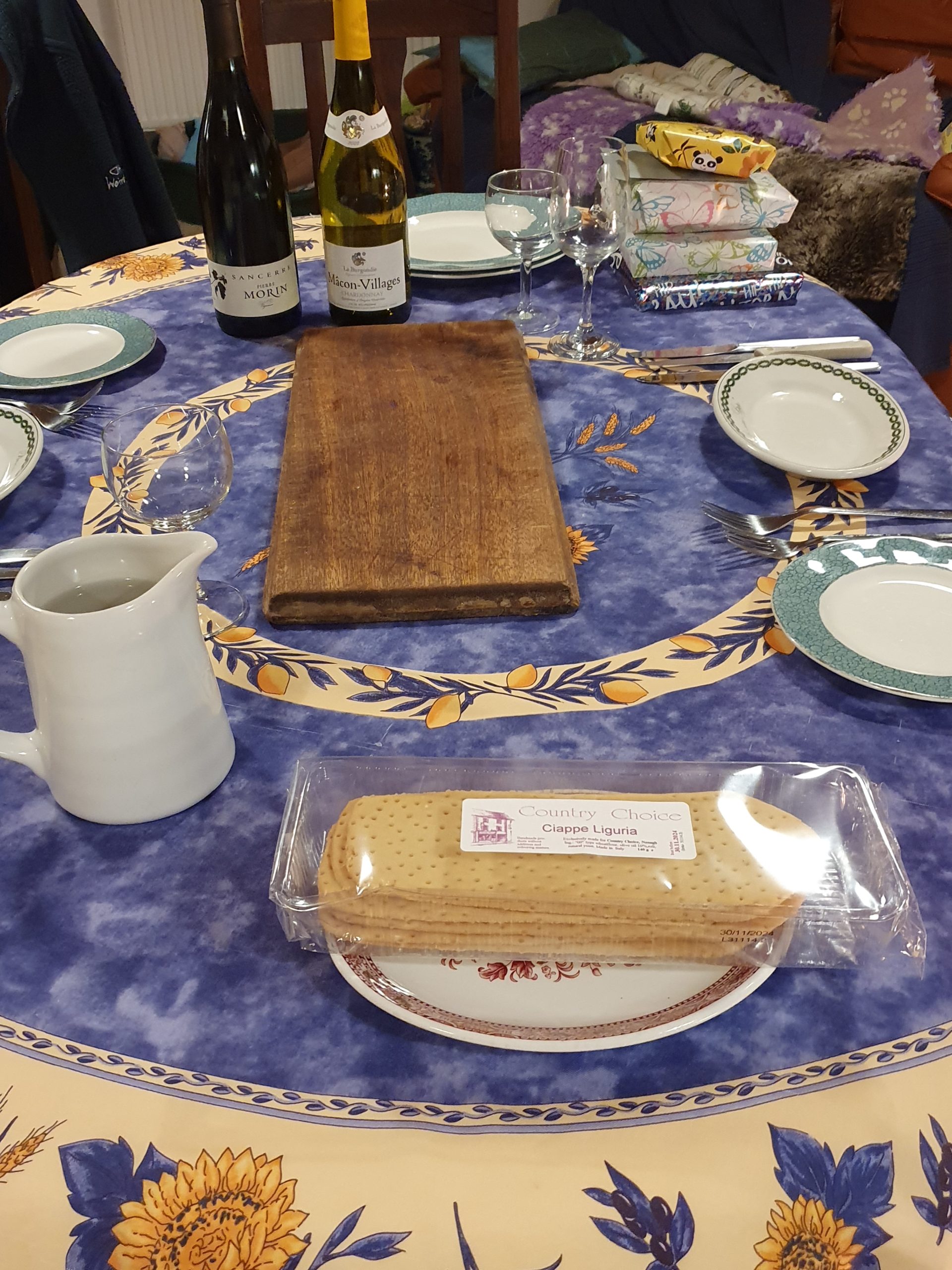 We wanted to mark our first three years in Ireland and so last night had a few local friends over for dinner. It was a delight and such a pleasure to have good company and good food. I can’t claim any credit for the food – Jacqui did wonders in the kitchen over the previous week. We were actually quite glad it has been so wintery as the fridge soon filled up. The back room, a grooming room and utility space, is very cold in January. I put a thermometer on the bench and found it was the same temperature as the fridge so for the last couple of days we could keep items from the chiller cabinets out there quite safely. It was a delight to sit around the table, talking, sipping wine and nibbling on leftovers again.